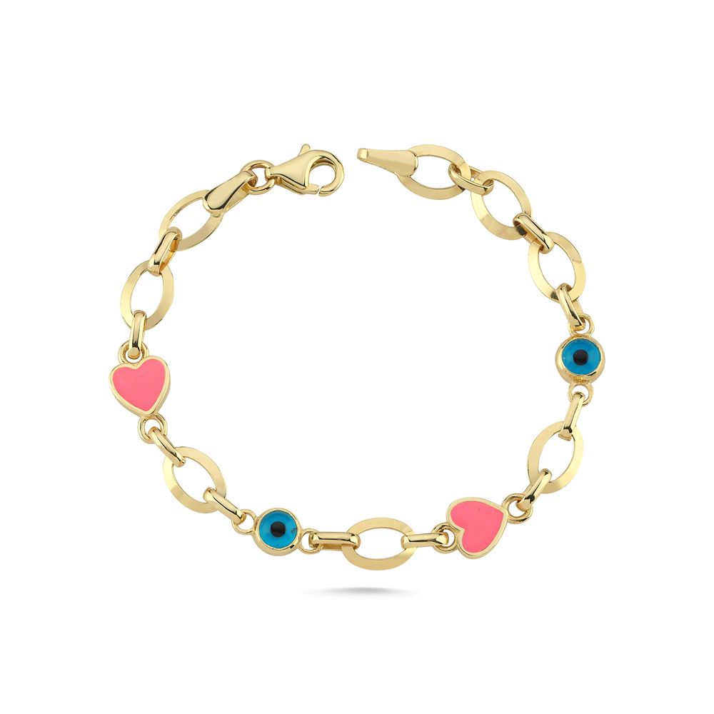 Nazar Boncuklu Pembe Kalpli Bileklik